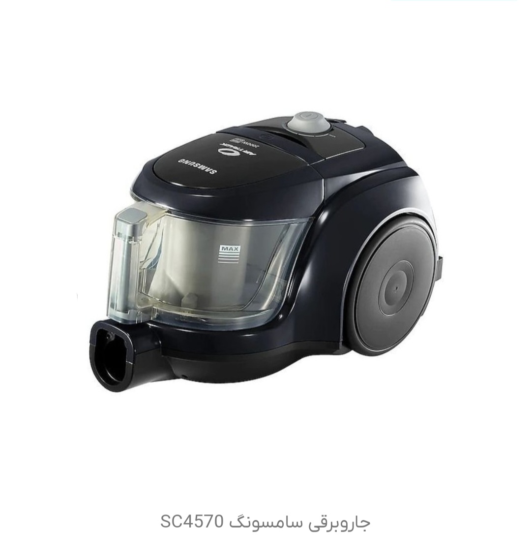 مدل SC4570 تولید کننده Samsung سال عرضه (میلادی) - سری - کشور سازنده کره کشور مونتاژ ویتنام حداکثر قدرت و توان (وات) 1800 قدرت مکش (وات) 370 قابلیت تنظیم قدرت مکش نوع جاروبرقی مخزن دار نوع کیسه ظرفیت کیسه یا مخزن (لیتر) 1.3 بخارشوی ظرفیت مخزن آب (لیتر) 0 جارو شارژی میزان شارژدهی باتری (دقیقه) 0 طول سیم برق (متر) 6 شعاع عملکرد (متر) 9.2 حداکثر سطح صدا هنگام کار (دسی بل) 82 فیلتر ها HEPA استفاده خانگی و معمولی افراد آلرژیک (ضد آلرژی) جاروبرقی مناسب امکانات و ویژگی ها صفحه نمایشگر قابلیت دمندگی هوا - فیلتر قابل شستشو کیسه قابل شستشو نشانگر پر شدن کیسه دریچه ایمنی کیسه قابلیت فشرده سازی زباله - سیستم جداسازی گرد و غبار قابلیت چرخش 360 درجه لوله خرطومی سیم جمع کن منبع تغذیه و برق حداکثر قدرت و توان (وات) 2000 ابعاد (عمق x ارتفاع x طول) ابعاد بدنه (میلیمتر) 280×238×395 ابعاد بسته بندی (میلیمتر) 310×316×502 وزن وزن خالص (کیلوگرم) 4.3 وزن بسته بندی (کیلوگرم) 6.8 طراحی نوع دسته معمولی رنگ بدنه مشکی جنس بدنه پلاستیک رنگ لوله مشکی نوع لوله تلسکوپی جنس لوله فلزی رنگ خرطومی نقره ای نوع چرخ ها لاستیکی تعداد چرخ ها 3 محل قرار گیری دکمه های کنترلی روی بدنه محل نگهداری نازل ها روی بدنه دستگیره حمل و نقل ضربه گیر بدنه - لوازم جانبی نازل اصلی فرش و سطوح صاف نازل شکاف ها و درز ها نازل مبلمان و پرده نازل مخصوص سطوح سخت نازل ها لوله خرطومی کیسه اضافه دفترچه راهنما کابل برق سایر ویژگی ها دستگیره Easy Grip Handle با طراحی ارگونومیک برای کنترل بهتر و راحتی بیشتر فیلتر HEPA برای جذب ذرات ریز گرد و غبار از هوای خروجی جاروبرقی مخصوص افراد آلرژیک با قابلیت شستشو لوله تلسکوپی با قفل کشویی و ضامنی مجهز به موتور قدرتمند و کم صدا چرخ های لاستیکی بزرگ (Large Rubber Wheels) برای حرکت راحت تر و جلوگیری از آسیب رساندن به سطح زمین سایر ویژگی های جاروبرقی انبار شافعی و سلام