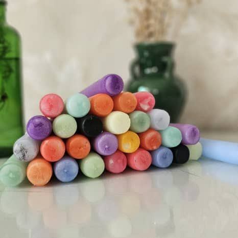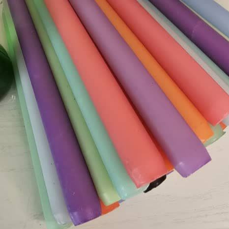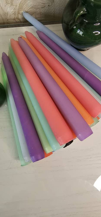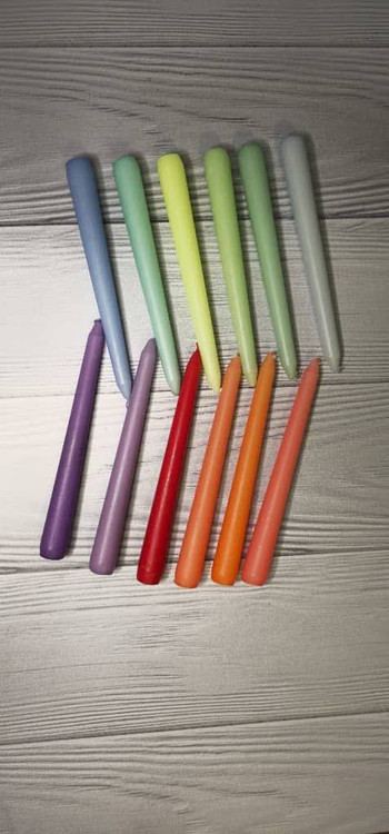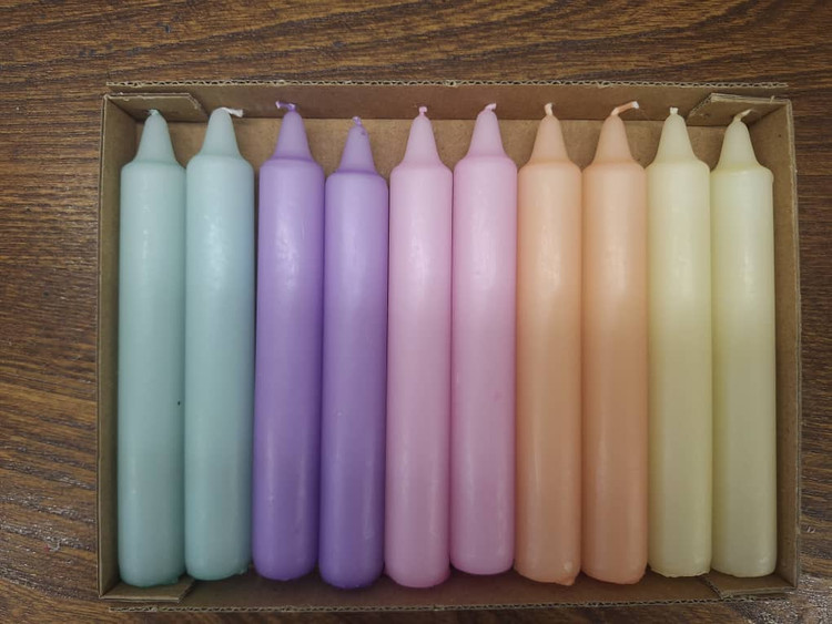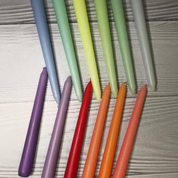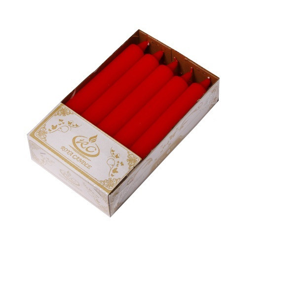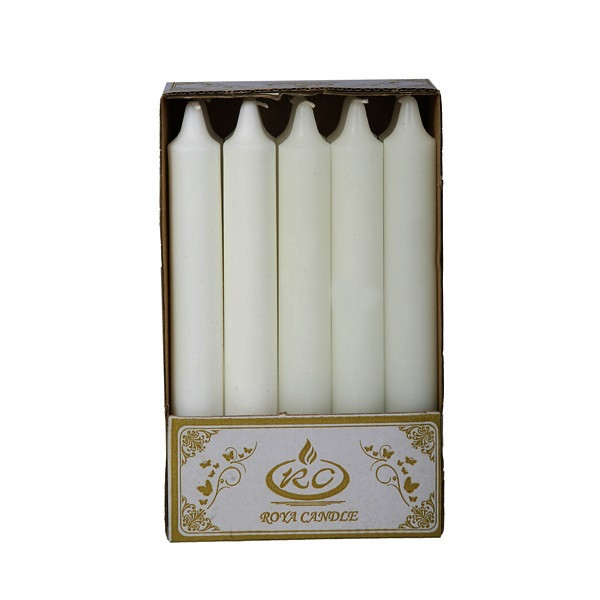 شمع دینر 18 سانتی متری با تنوع رنگ مناسب در جعبه 10 عددی بسته بندی زیبا تولید کارخانه رویا کندل تولید شده با پارافین درجه یک بدون اشک با تایم سوخت مناسب