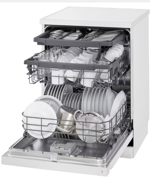 سیستم Smart Diagnosis برای عیب یابی هوشمندسیستم Aqua-Stop برای جلوگیری از نشت آبقابلیت Control Lock برای قفل کردن پنل کنترلی ماشین ظرفشوییدارای نماد پر کردن مجدد نمک (Salt Refill Icon)دارای موتور Inverter Direct Drive با طول عمر بالا و صرفه جویی در مصرف انرژی و زمان هنگام شستشوقابلیت Extra Dry برای خشک کردن بهتر ظروفبرنامه Delicate برای شستشوی ظروف ظریف و شیشهایدارای قیف (Funnel) برای پر کردن مخزن نمک ماشین ظرفشوییدارای قابلیت Machine Clean Reminder جهت یادآوری تمیز کردن دستگاهقابلیت شروع شستشو با تاخیر از 1 تا 12 ساعتشستشوی سریع (Express Cycle) در 38 دقیقهسیستم Water Softener برای کاهش سختی آبسیستم Vario Washing System شدت شستشو را در طبقه تنظیم می کندپشتیبانی از برنامه LG ThinQ برای کنترل و مدیریت ماشین ظرفشویی از طریق موبایل (مخصوص موبایل های اندرویدی و iOS)قابلیت High temp برای شستشو با آب داغبرنامه شستشوی Machine Clean برای شستشو و تمیز کردن خودکار داخل ماشین ظرفشوییدارای چرخه Intensive برای شستشوی ظروف بسیار کثیفتکنولوژی QuadWash برای شستشوی بهتر ظروف با استفاده از بازوی آبپاش 4 پرهقابلیت Energy Saver برای صرفه جویی در مصرف انرژیطراحی کاملا مینیمال برای هماهنگی هر چه بهتر با آشپزخانه شمادارای 3 بازوی آبپاش (Top, Upper, Lower Spray Arms)دارای قابلیت تاشو (Foldable Tines) دندانه های سبد برای جایگیری ظروف بزرگ تراستفاده از مواد ضد باکتری در ساخت برخی از اجزا ماشین ظرفشویی (Anti-Bacterial Treatment)دارای نگهدارنده مخصوص لیوان های پایه دار (Stemware Holder)دارای طبقه یا سبد بالا (Extra Space 3rd Basket) مخصوص قرارگیری قاشق، چنگال و ظروف کوچکسیستم SenseClean میزان کثیفی ظروف را تشخیص می دهد و شستشو را به صورت خودکار تنظیم میکندتضمین عملکرد و کارایی موتور Inverter Direct Drive تا 10 سال توسط ال جیقابلیت Half Load برای شستشوی ظروف با نصف ظرفیتمجهز به قابلیت Delay Start برای شروع شستشو با تاخیردارای 2 نوار نویزگیر (Noise Strip) با قابلیت نصب برای کاهش انتقال لرزش و صدای ماشین ظرفشوییقابلیت Dual Zone برای شستشوی ظروف ظریف و ظروف بزرگ به طور هم زمانشستشوی توربو (Turbo Cycle) در 59 دقیقهدارای سنسور تشخیص میزان کثیفی آب و ظروف (Soil Sensor)دارای قابلیت NFC (Near Field Communication) برای وصل شدن گوشی به دستگاه