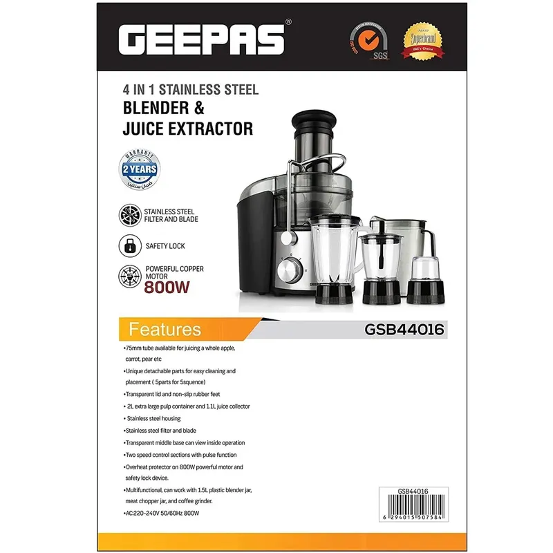 آبمیوه گیری 800 واتی GEEPAS با قدرت عالی اما کار بی سر و صدا - موتور قدرتمند 800 واتی کمک می کند تا میوه ها و سبزیجات را سریع و کارآمد به آبمیوه ای خوشمزه تبدیل کنید. محافظ های گرمای بیش از حد می توانند از گرم شدن بیش از حد موتور جلوگیری کرده و از خرابی در آینده جلوگیری کنند. با وجود سرعت بالا، این آبمیوه گیری سرد با سر و صدای خود در زندگی مشترک شما اختلال ایجاد نمی کند.