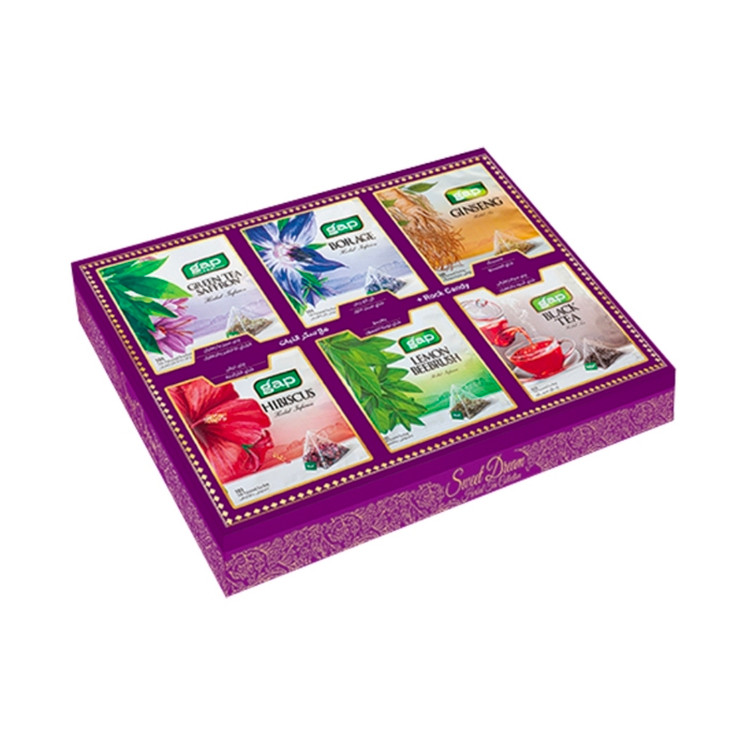 در جعبه دمنوش Sweet Dream گپ 18 عدد دمنوش کیسه ایی وجود دارد که مناسب برای 18 وعده می باشد. شما میتوانید با خرید دمنوش sweet Dream لذت نوشیدن دمنوشی عالی را خواهید برد.