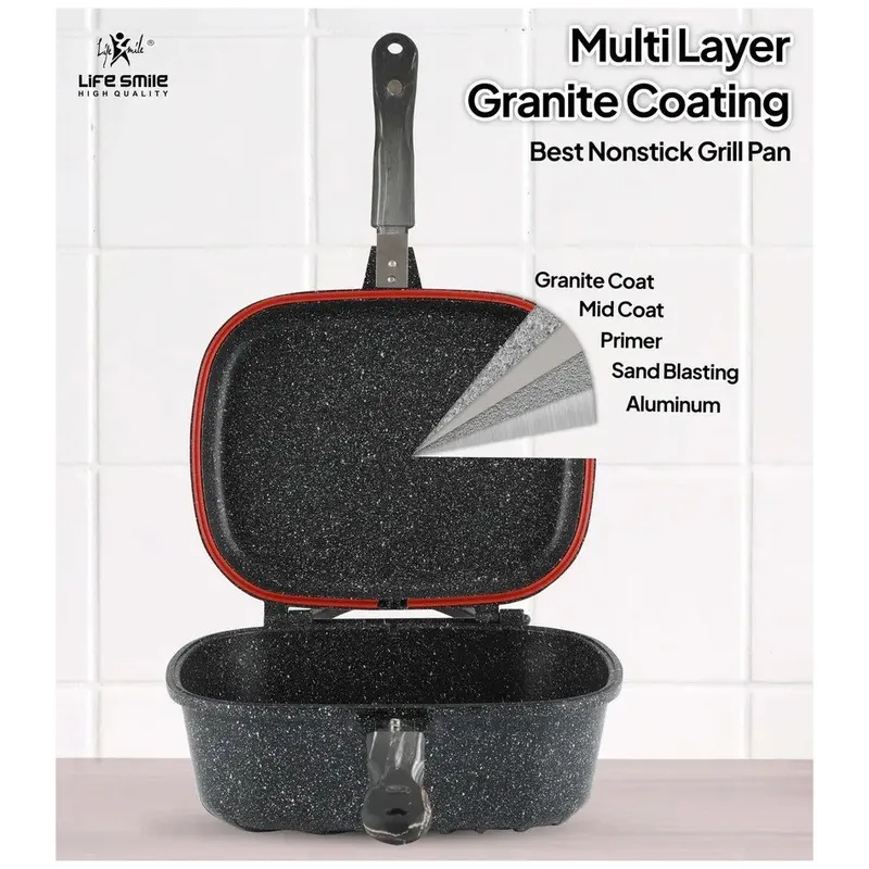 تابه دو طرفه دیواره بلند Lifep72 30 لایف اسمایل دارای روکشی از جنس گرانیت است که علاوه بر مصرف کمترین میزان روغن، باعث می شود هیچ گونه مواد غذایی به آن نچسبد و عمل شستشو را راحت می کند. برای افزایش طول عمر محصول بهتر است هنگام کار با آن از قاشق های چوبی و پلاستیکی استفاده کرد. قابلیت شستشو با دست و ماشین ظرفشویی را دارد اما برای شستشوی تابه به هیچ عنوان از سیم ظرفشویی استفاده نکنید زیرا موجب از بین رفتن روکش آن می شود. توصیه می کنیم با یک اسکاج مناسب ابری تابه را شسته و سپس آن را خشک کنید. قبل از استفاده برای اولین بار از تابه آن را با مواد شوینده شسته و با کمی روغن یا کره سطح آن را چرب کنید. هیچ گاه تابه را وقتی خالی است گرم نکرده و فقط برای پخت و پز استفاده کنید. از تابه برای نگهداری غذا برای مدت طولانی استفاده نکنید زیرا برخی از مواد غذایی می توانند به پوشش داخلی آن آسیب برسانند.